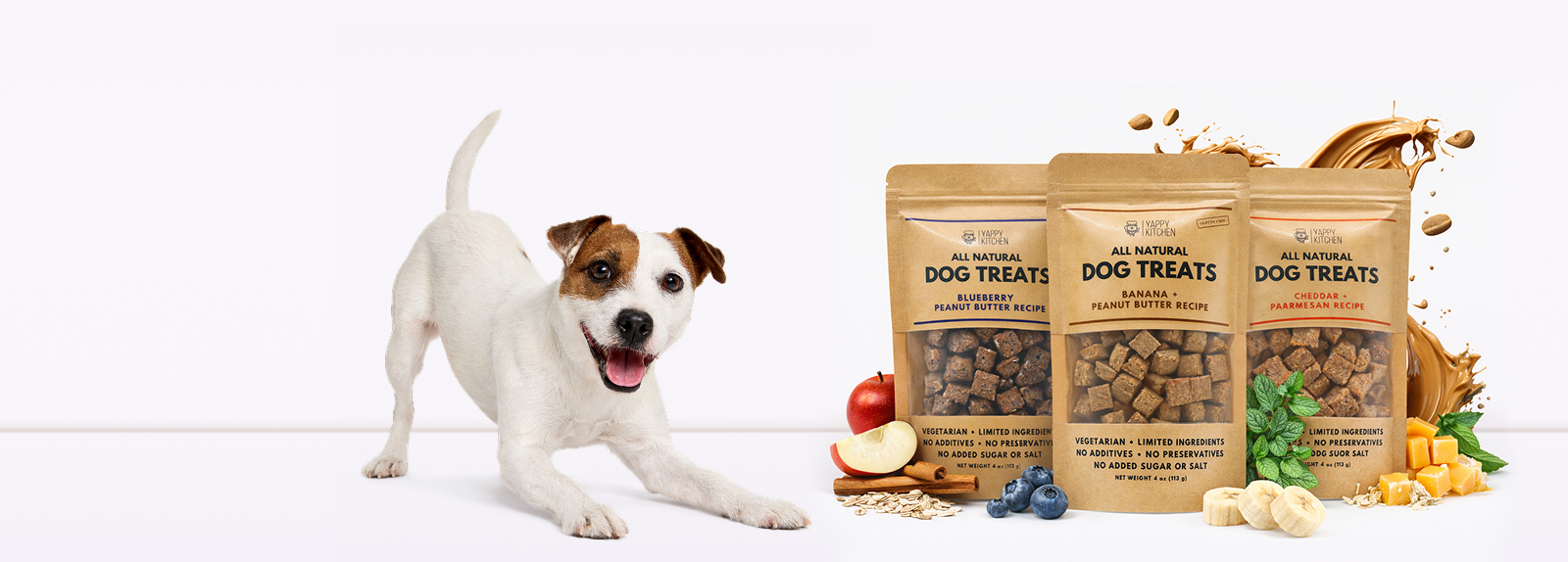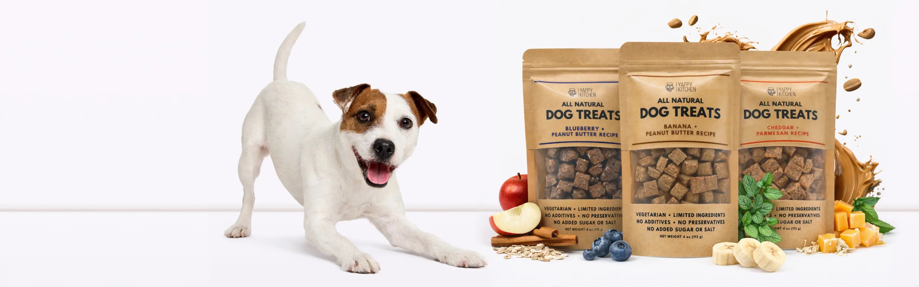 Yes! All Yappy Kitchen dog treats are made with whole, natural ingredients and contain no fillers or unnecessary additives. We focus on clean, simple recipes with limited ingredients, so you can feel confident about what you’re feeding your dog.